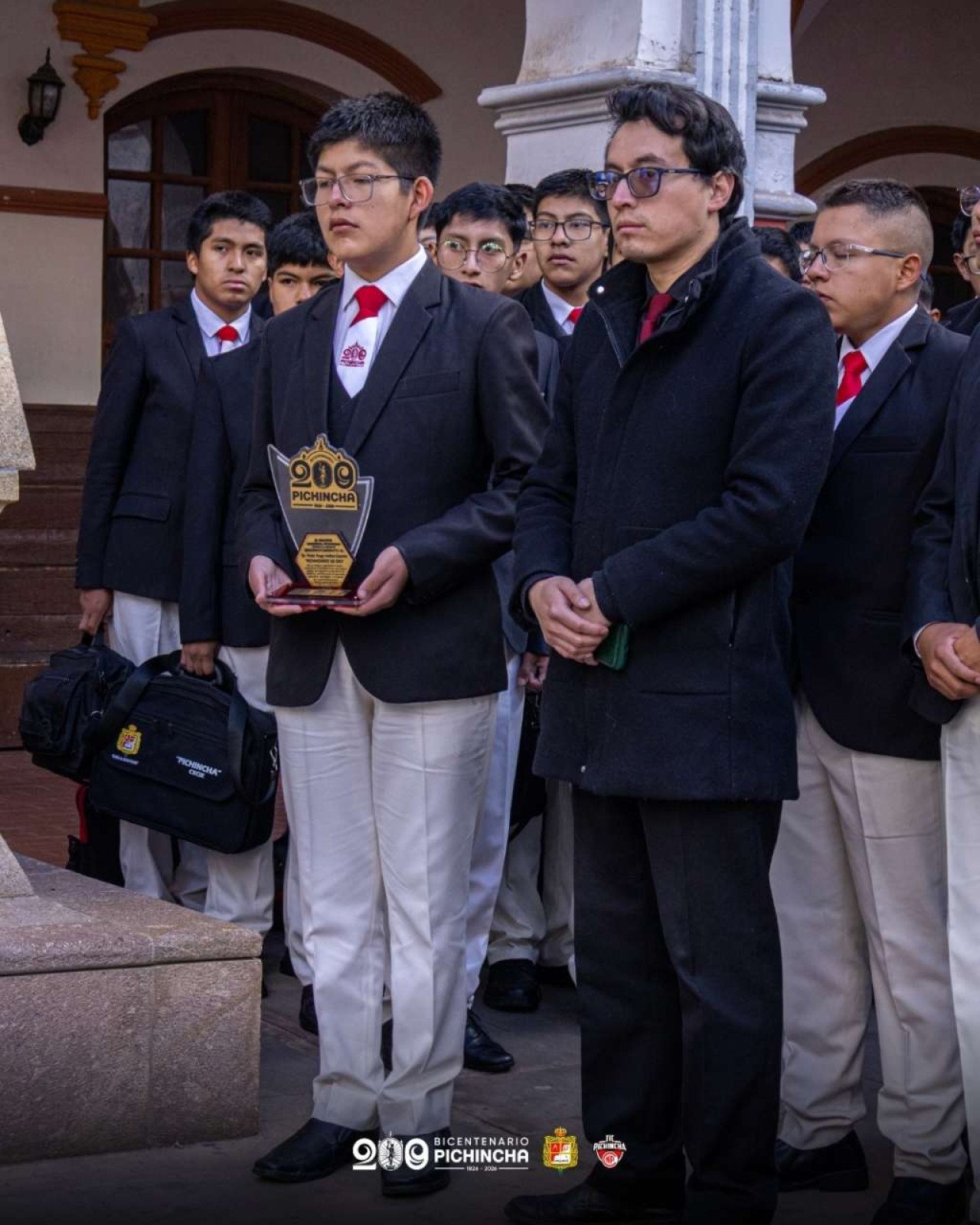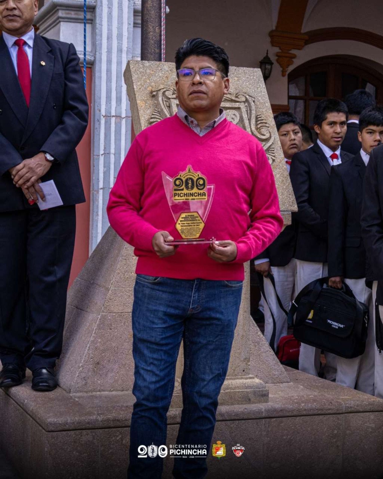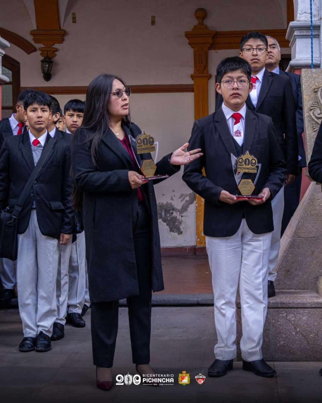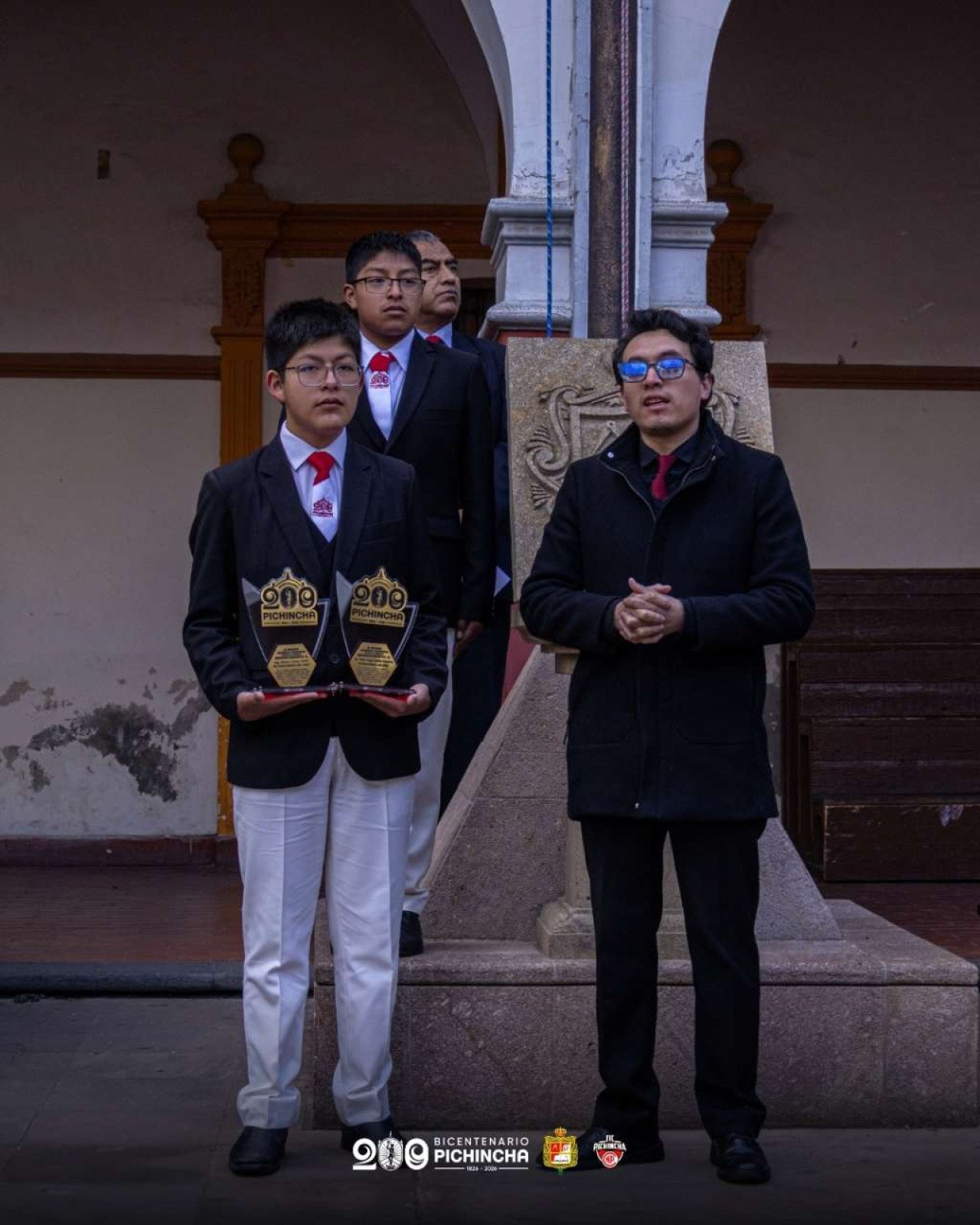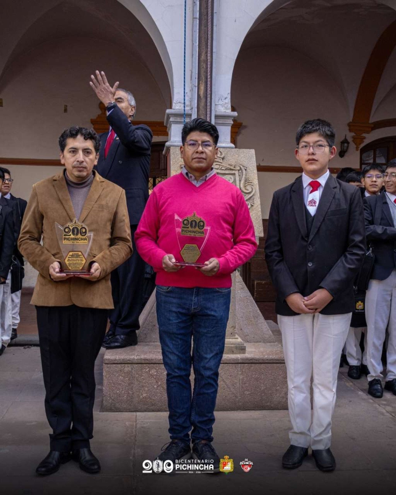 Asimismo, se llevó a cabo la entrega de reconocimientos a destacados exalumnos de nuestra institución: el Ing. Álvaro Víctor Ortiz y el Sr. Víctor Hugo Cazorla, en mérito a su valioso aporte al fortalecimiento del colegio, particularmente al gabinete de robótica, contribuyendo al desarrollo educativo y tecnológico de nuestros estudiantes en el marco del bicentenario institucional.