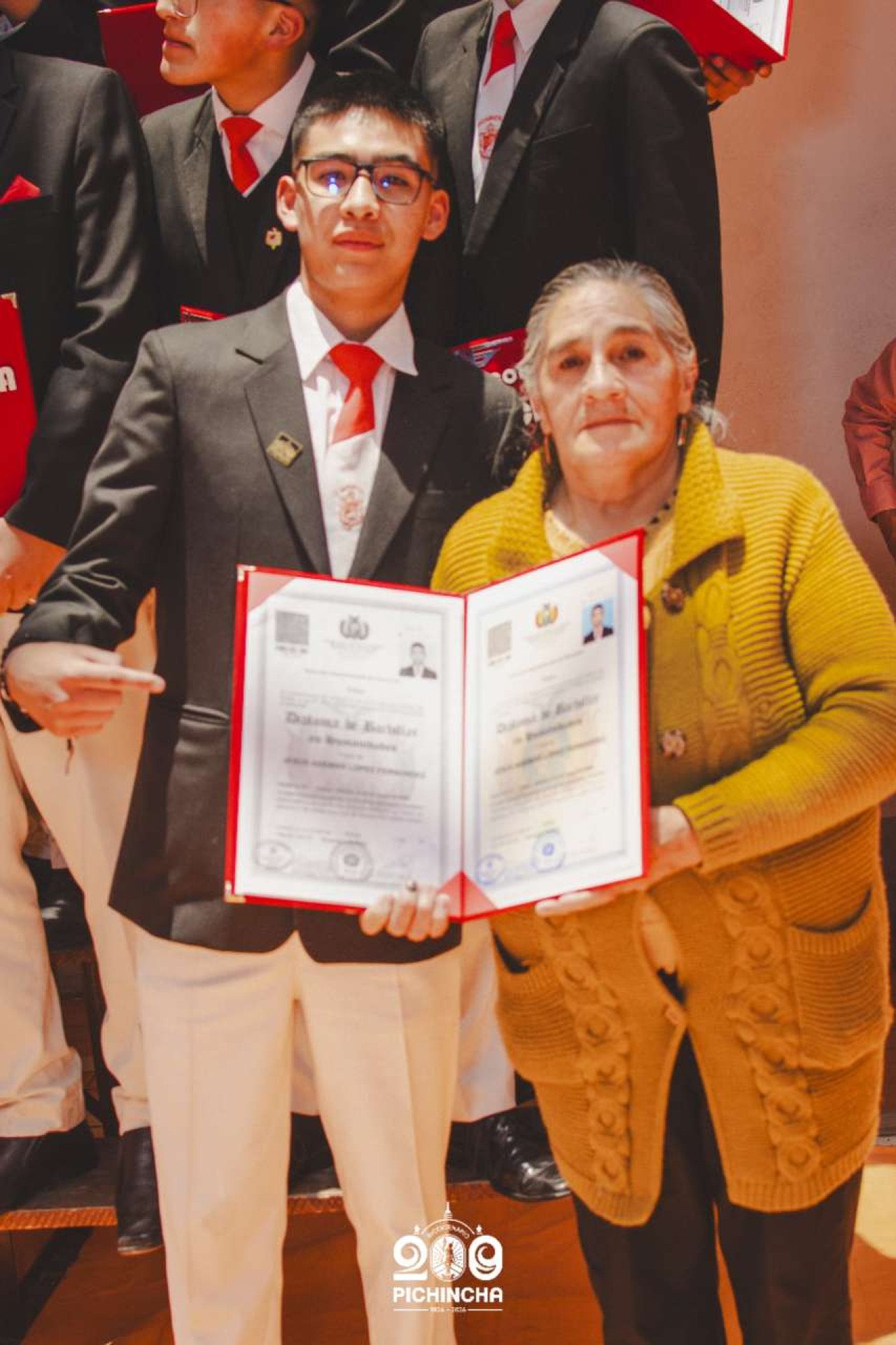 El Colegio Nacional Pichincha presenta las im谩genes de una jornada hist贸rica. Una nueva generaci贸n de bachilleres parte llevando el rojo y blanco y el lema "Constancia y Trabajo" en el coraz贸n.